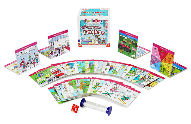 Questa edizione di Brainbox aiuta ad imparare l’inglese in modo divertente con 55 carte da gioco e 440 domande individuali (metà semplici in italiano/inglese e metà solo in inglese). Dalla vita di tutti i giorni agli sport e alla spesa, questo gioco per tutta la famiglia contiene illustrazioni disegnate a mano che danno vita a ogni scena.