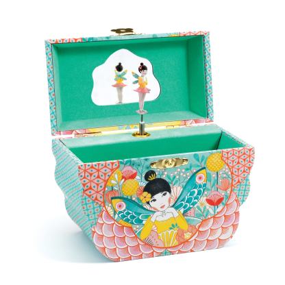 Delizioso carrillon con melodia, dai colori pastello con soggetto fatina e cassettino anteriore.
