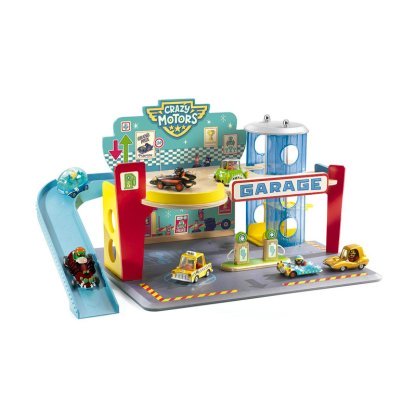 Ambientazione in legno e plastica per macchinine della linea Crazy Motors Djeco.