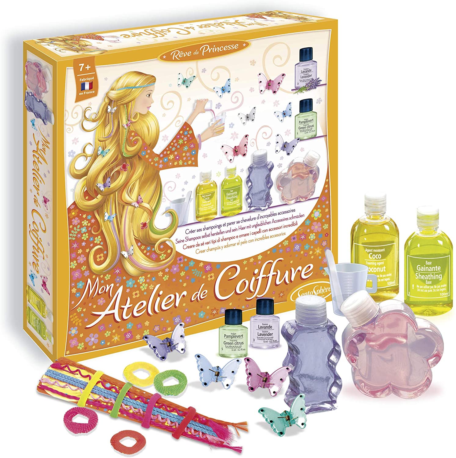 Kit con ingredienti per creare shampoo extradolci ed imparare ad acconciarsi prendendosi cura dei propri capelli . Adatto dai 7 anni.