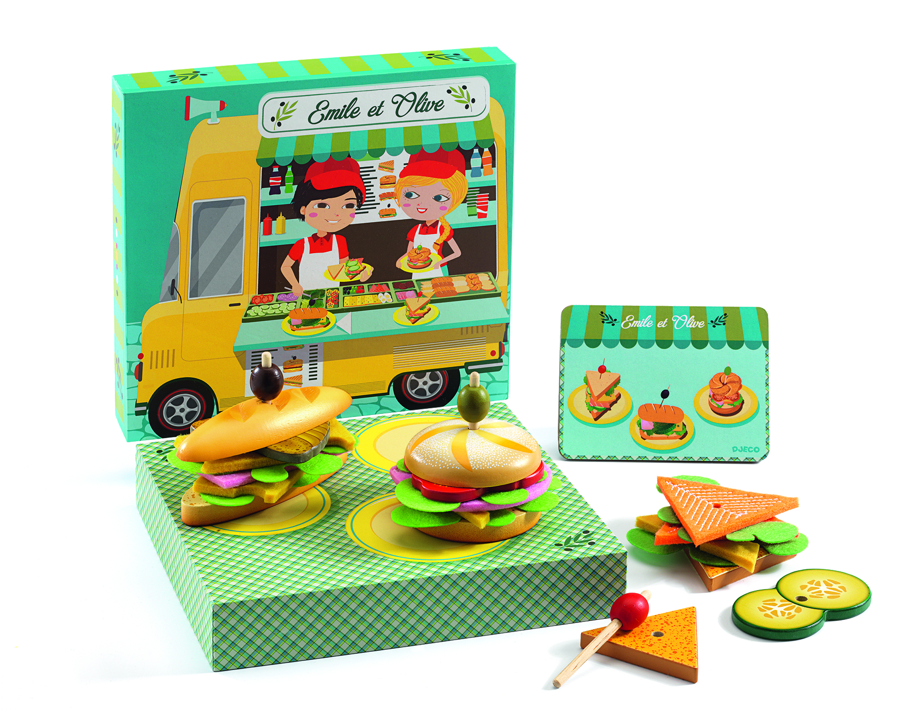 Tanti pezzi in legno e stoffa da infilare per creare panini sempre diversi! Dai 4 anni