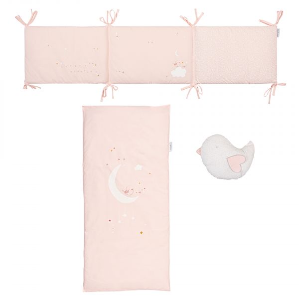 Piumone, paracolpi e cuscino a forma di uccellino. Per lettini 60 x 120.