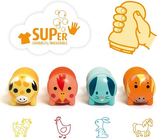 Timbri autoinchiostranti, adatti dai 18 mesi, con impugnatura facile, super lavabili.