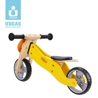 Pratica minibike in legno Udeas, si trasforma da stabile triciclo in balance bike eliminando una ruota posteriore, accompagnando i bimbi nella crescita. Dai 18 mesi.