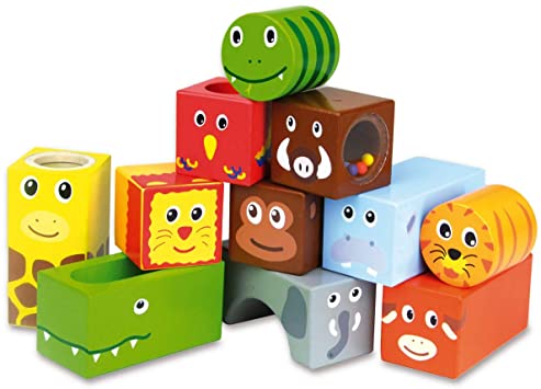 Costruzioni in legno con suoni naturali differenti, non registrati, tutti da giocare e costruire. Materiale legno. Dai 18 mesi.